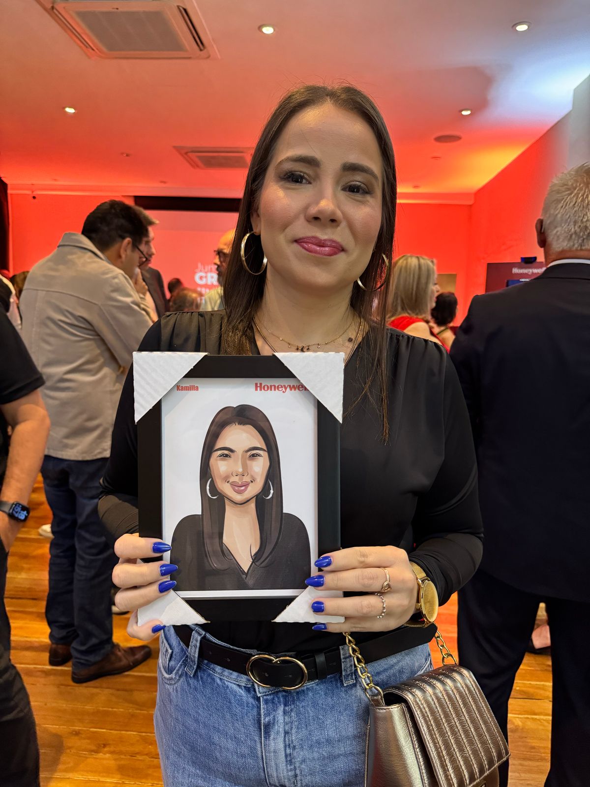 Caricatura em molduras com vidro tamanho A5 ou A4 são ótimas opções para brindes corporativos em diversos formatos em eventos.